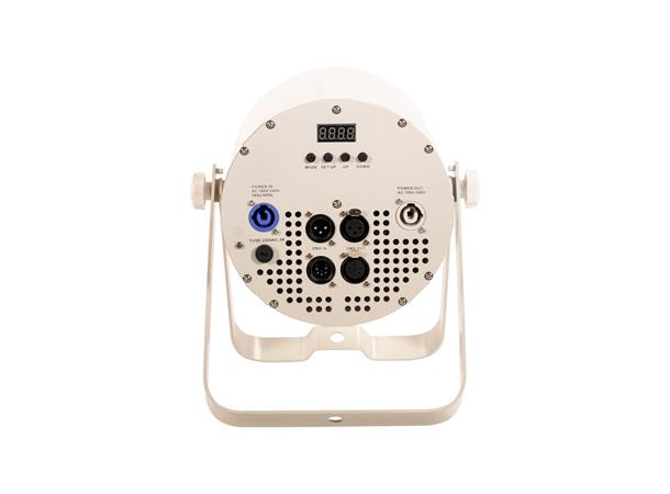 The COB Cannon Wash ST Pearl comes in a white housing and has massive 80-degree beam angle. Easily replaceable 40-degree and 50-degree lenses are included so that the beam angle may be changed.